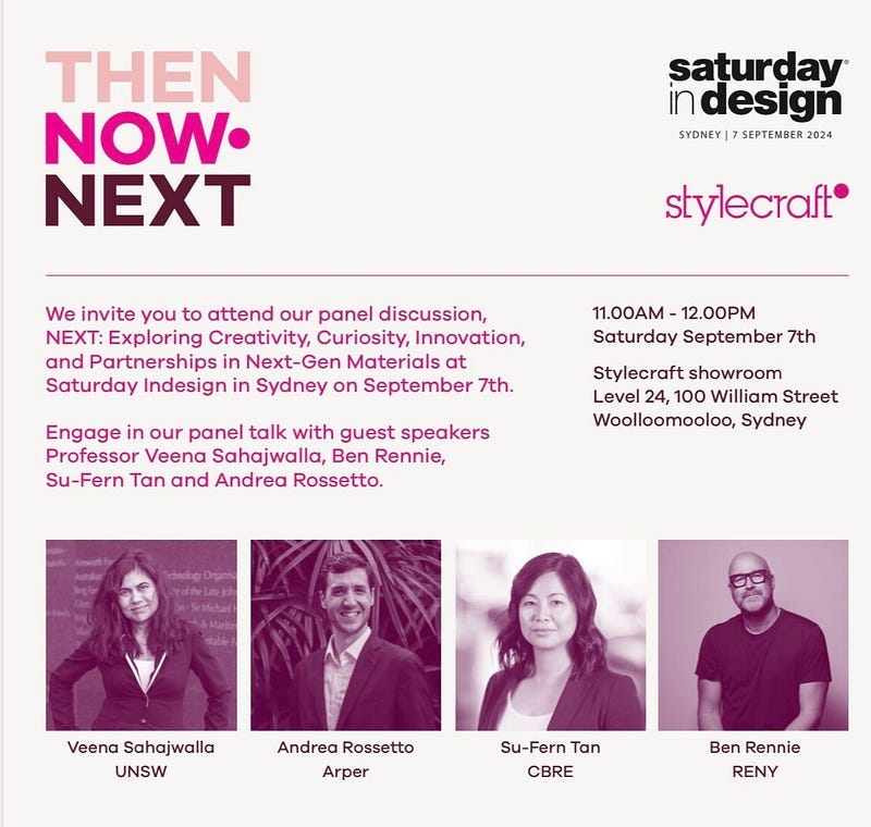 Last weekend, I had the privilege of joining a panel at the Stylecraft Then, Now, Next design event, alongside three of the most remarkable people I’ve shared a stage with. One of them was Scientia Professor Veena Sahajwalla from the University of New South Wales. Her opening remarks about molecules and science stretched my understanding of design and human behaviour in fascinating ways. In her explanation, Professor Veena emphasised everything comprises molecules, and she highlighted the power of human creativity in transforming the old into something new.