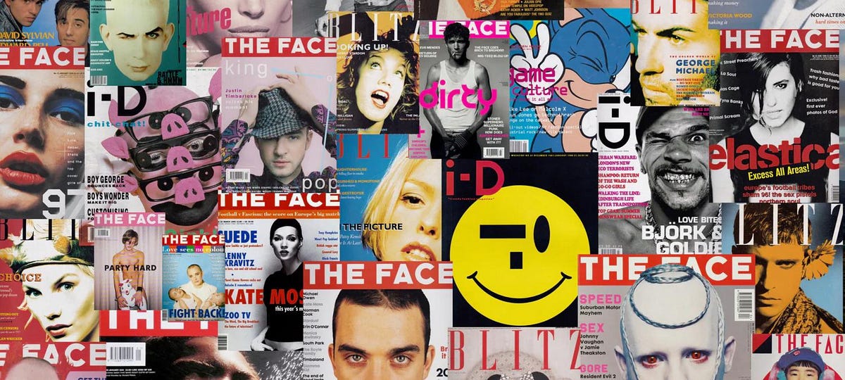 My desk bears the clutter of old magazines — The Face, Vogue (90’s editions), iD, Sleeznation, Monocle, the defunct Arena, Smith Journal, and stacks of books flanking my screen. They serve a purpose beyond my reflection on the 90's. They remind me that someone has addressed most problems I encounter in my work. They’re a collection of solutions, a library of past thoughts and endeavours. Flicking through the pages of old magazines and content is like a creative spark for my imagination.